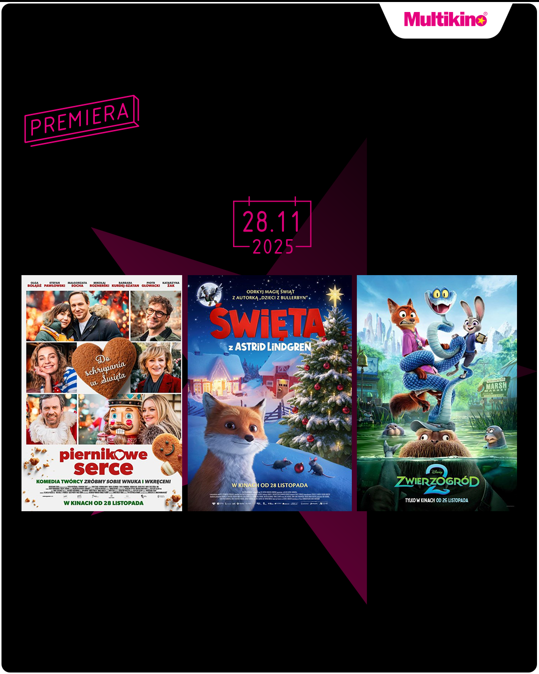 Od 21 listopada na widzów w kinach sieci Multikino będzie czekała druga część musicalu „Wicked: Na dobre” z Arianą Grande, film „Ministranci” balansujący między dramatem a czarnym humorem oraz „Rocznica” - pierwszy zrealizowany w Hollywood film Jana Komasy. Szczegółowy repertuar jest dostępny na stronie www.multikino.pl.