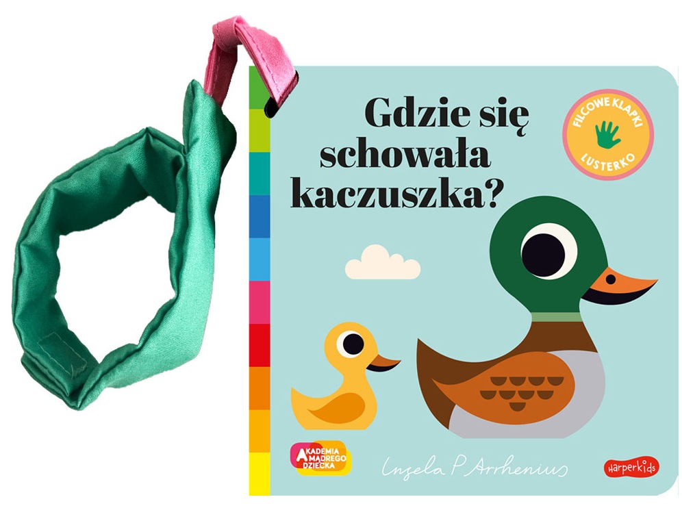 „Gdzie się schowała kaczuszka?” z serii Zabawa w chowanego to urocza nowa edycja bestsellerowej książeczki dla maluchów – z filcowymi klapkami i lusterkiem Akademii Mądrego Dziecka. Książeczka zawiera pięć rozkładówek z przyjaznymi postaciami, które można znaleźć za kolorowymi filcowymi klapkami. W książeczce "Gdzie się schowała kaczuszka" szukamy motyla, żabki, dżdżownicy i samej kaczuszki! Pod ostatnią klapką czeka niespodzianka – lusterko, które zawsze zachwyca najmłodszych.