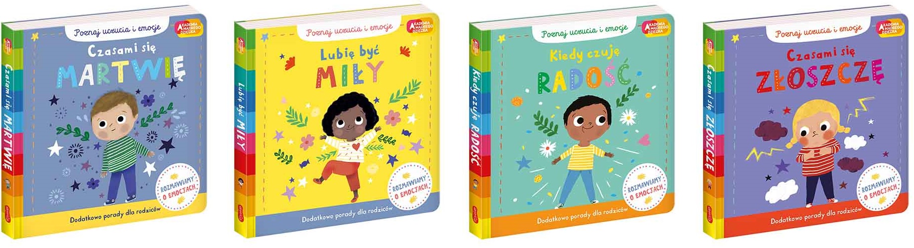 Nowa seria książeczek „Poznaj uczucia i emocje” pomaga zrozumieć dziecku emocje i uczucia, które odczuwa. W książkach znajdują się też porady dla rodziców dotyczące tego, jak rozmawiać z dziećmi o tym, co czują i jakie ćwiczenia robić, by rozładowywać negatywne emocje. Seria konsultowana przez eksperta.