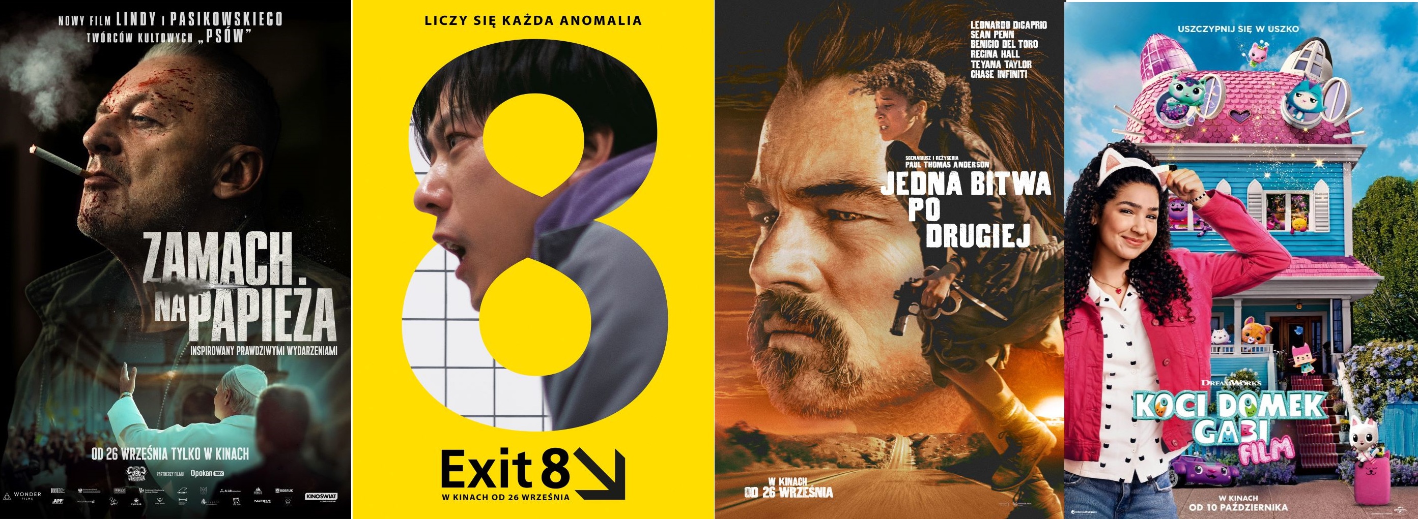 Od 26 września na widzów w kinach sieci Multikino będą czekały aż trzy premierowe propozycje – „Zamach na papieża” z Bogusławem Lindą, „Jedna bitwa po drugiej” z Leonardo DiCaprio oraz japoński thriller „Exit 8” . Ponadto 27 i 28 września przedpremierowo będzie można zobaczyć „Koci domek Gabi”. Szczegółowy repertuar jest dostępny na stronie www.multikino.pl.