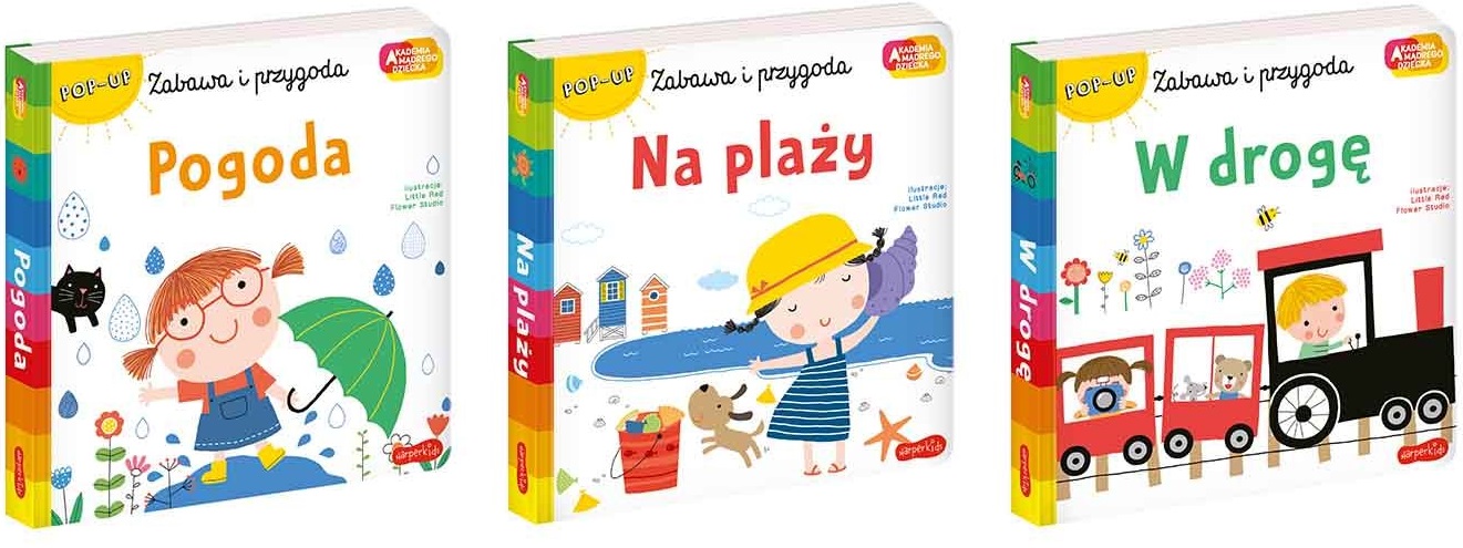 Książeczki z serii „Zabawa i Przygoda” przedstawiają krótkie historyjki o dzieciach, które przeżywają różne przygody. Każda rozkładówka pokazuje nowe przygody, dzięki którym mały czytelnik poznaje świat. Książeczki zawierają elementy POP-UP, które dodatkowo pobudzają wyobraźnię i zachęcają do wspólnego czytania.