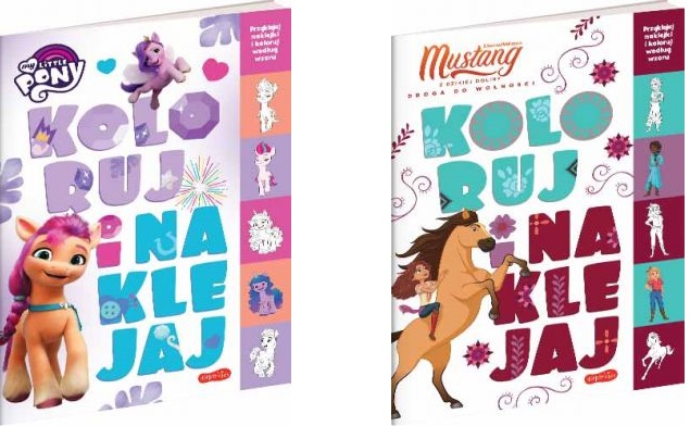 Seria prostych kolorowanek z prostokątnymi naklejkami, które mogą posłużyć jako kolorystyczna ściągawka dla małego artysty!