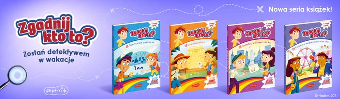Zgadnij kto to? to kolekcja czterech książek z fascynującymi zagadkami i ilustracjami nawiązującymi do popularnej gry planszowej.