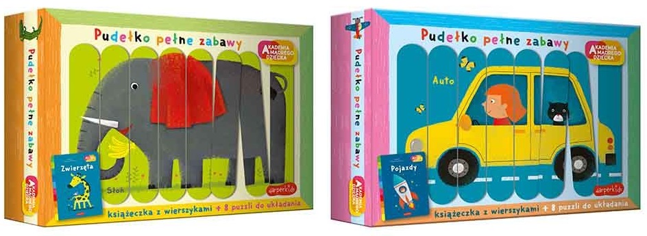 Pudełko pełne zabawy to zestaw zawierający książeczkę z rymowankami oraz puzzle.