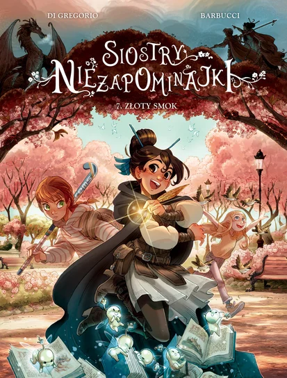 Najnowszy tom mądrej, zaskakującej i wzruszającej opowieści o trzech siostrach Niezapominajkach. Dziewczynki są bardzo zajęte. Sara gra w turnieju sportowym, Kasjopeja pisze opowiadanie na konkurs, a Lucilla pomaga w schronisku dla zwierząt. I właśnie wtedy orientują się, że z miejskiego parku zniknęła rzeźba smoka, którą uznawały za totem swojego Klubu Trzech Sióstr! Kto ją ukradł? Rozpoczynają śledztwo, które doprowadzi je do ciekawych wniosków na temat tak ważnych spraw jak ambicja, osiąganie celu i przyjaźń. Może też uda im się uratować dzielnicową księgarnię, a wraz z nią prawdziwą magię słów?